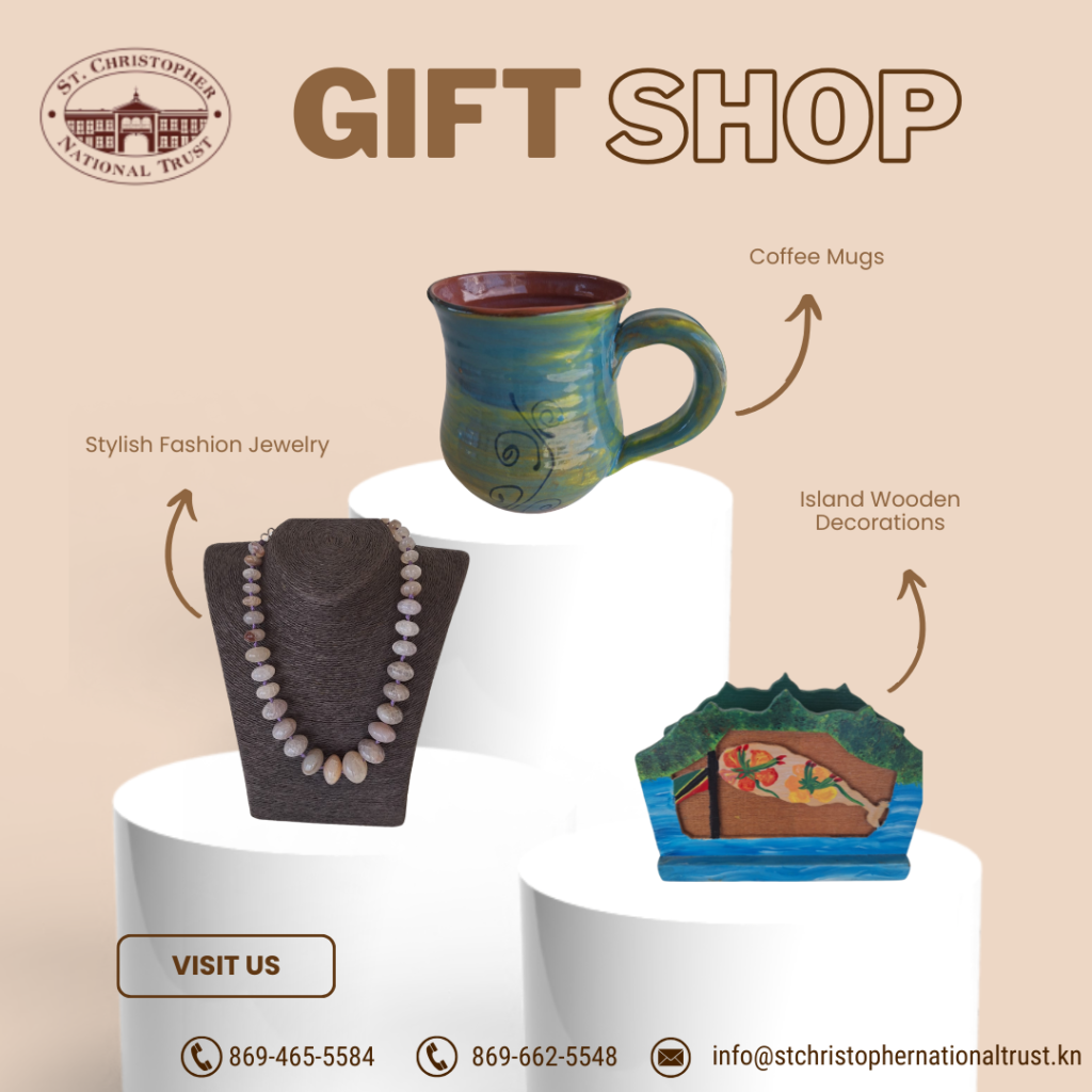 We’re excited to welcome you back to the St. Christopher National Trust Gift Shop, now open at our temporary location in National Heroes Park while the Old Treasury Building is under renovation.
